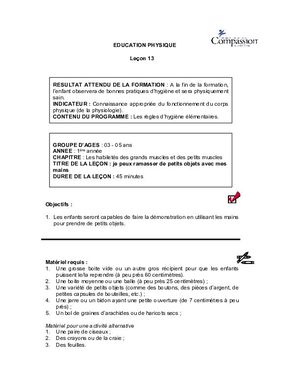 Ce document fait partie de: Curriculum - Domaine Physique - 3 à 5 ans - Année 1
