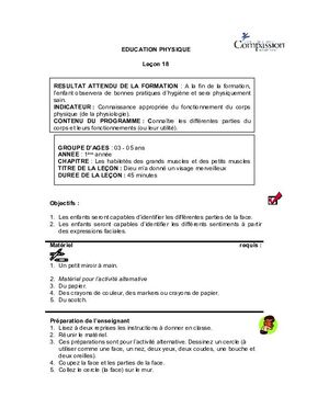 Leçon 18: Dieu m'a donné un visage merveilleux