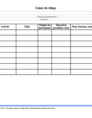 Le Cahier du village est un outil qui permet de capitaliser certaines informations pour chaque activité dans le cadre de l'Intervention Ecole des Maris