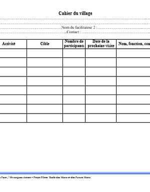 Le Cahier du village est un outil qui permet de capitaliser certaines informations pour chaque activité dans le cadre de l'Intervention Ecole des Maris