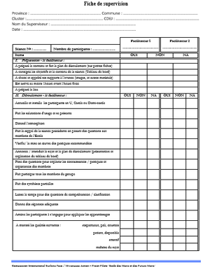 La Fiche de Supervision est un outil qui permet de suivre et d'améliorer le travail du facilitateur des séances de l'interven…