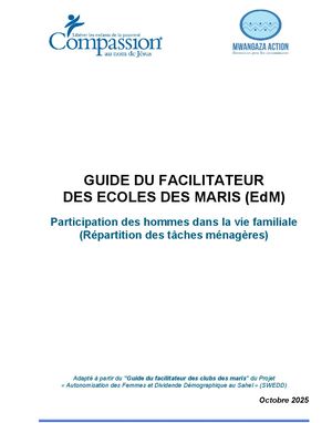 Guide du facilitateur pour la mise en œuvre du volet Les Relations de Couple et engagement pour le changement de l'intervention Ecole des Maris.