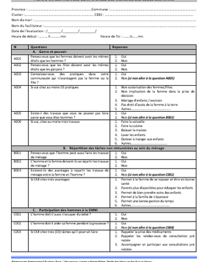 Ce questionnaire a pour but d'évaluer le niveau de connaissance des Maris avant la mise en œuvre de l'Intervention Ecole des Maris