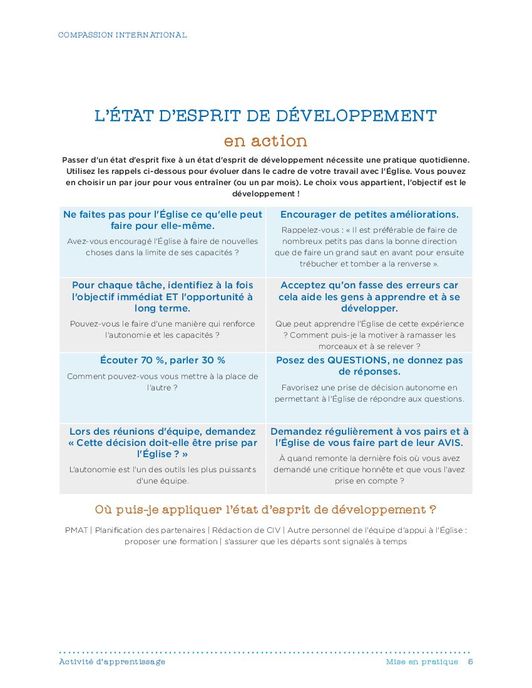 Observez comment adopter l'état d'esprit de développement et analysez l'impact que cela a sur l'Église.