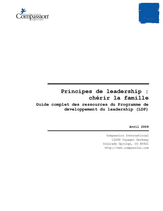 Le cours intitulé « Principes de leadership : chérir la famille » traite de l'importance de valoriser et de privilégier les besoins de la famille par rapport au travail et au ministère. Ce cours propose quatre méthodes pour commencer à développer ce principe de leadership. Des questions pour susciter une réflexion personnelle et des idées de mise en pratique se trouvent à la fin du cours.