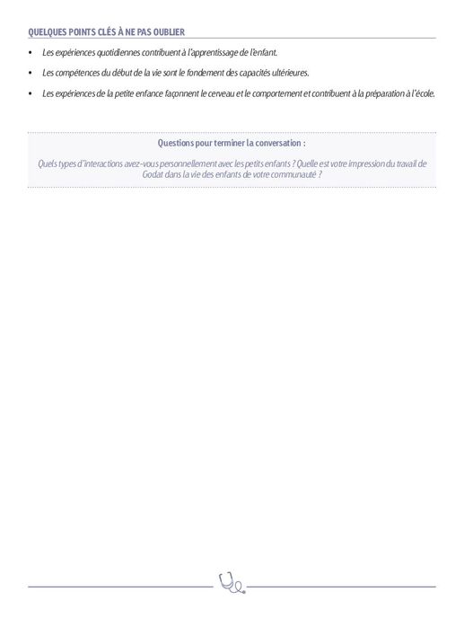 Ce guide de discussion sur le cerveau en développement fait partie de Terry Talks, série de présentations vidéo et de documentation à l'appui dirigée par Terry Laura (Conseiller technique en matière de santé chez Compassion International). Les être humains en apprennent plus dans leur cinq premières années qu'à toute autre période de la vie. Quatre-vingt pour cent du cerveau de l'enfant est formé avant son troisième anniversaire. Si nous voulons que les enfants deviennent des adultes épanouis et prospères, nous devons nous y mettre de bonne heure afin de bâtir de solides fondations pour la croissance, l'apprentissage, la santé et le comportement dans le cerveau de l'enfant. Ce guide complémentaire est rempli d'autres informations intéressantes au sujet du cerveau en développement, ainsi que de questions de discussion qui vous permettront de définir avec votre équipe les mesures à prendre pour améliorer véritablement la vie des enfants dans votre communauté.